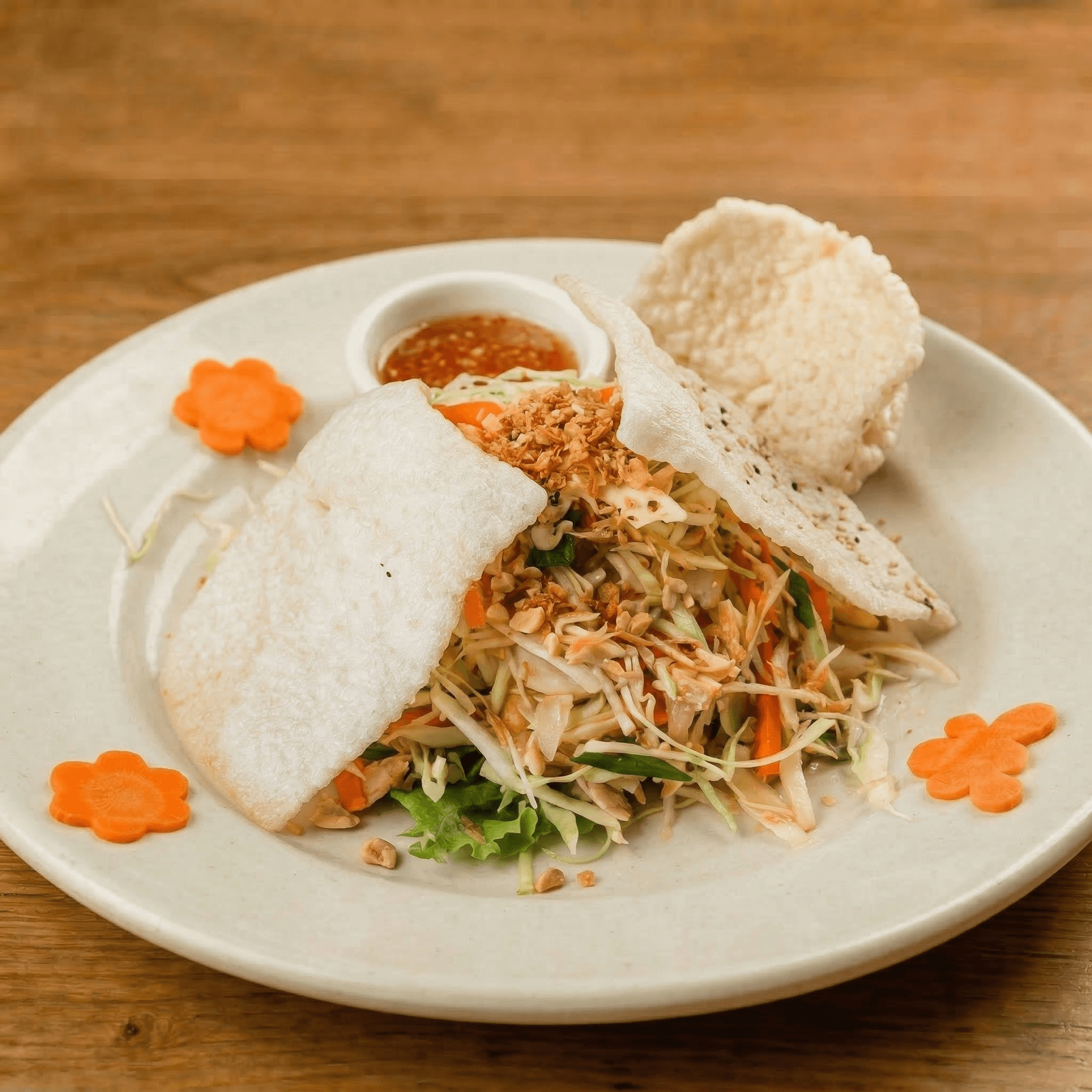 With carrot and ginger dressing or with fish sauce upon request