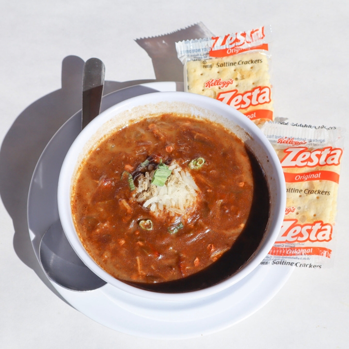 Cup of sausage gumbo. *allergy alert - shellfish*