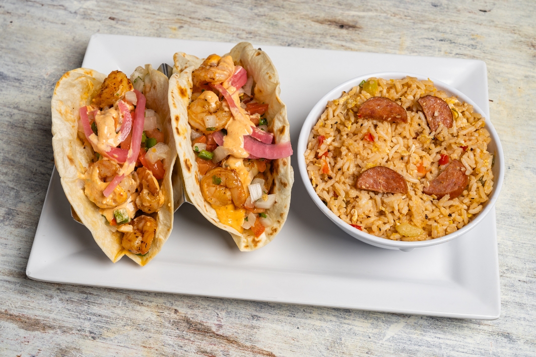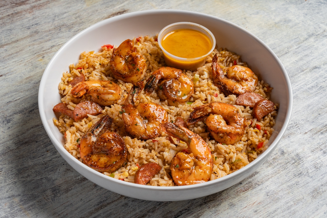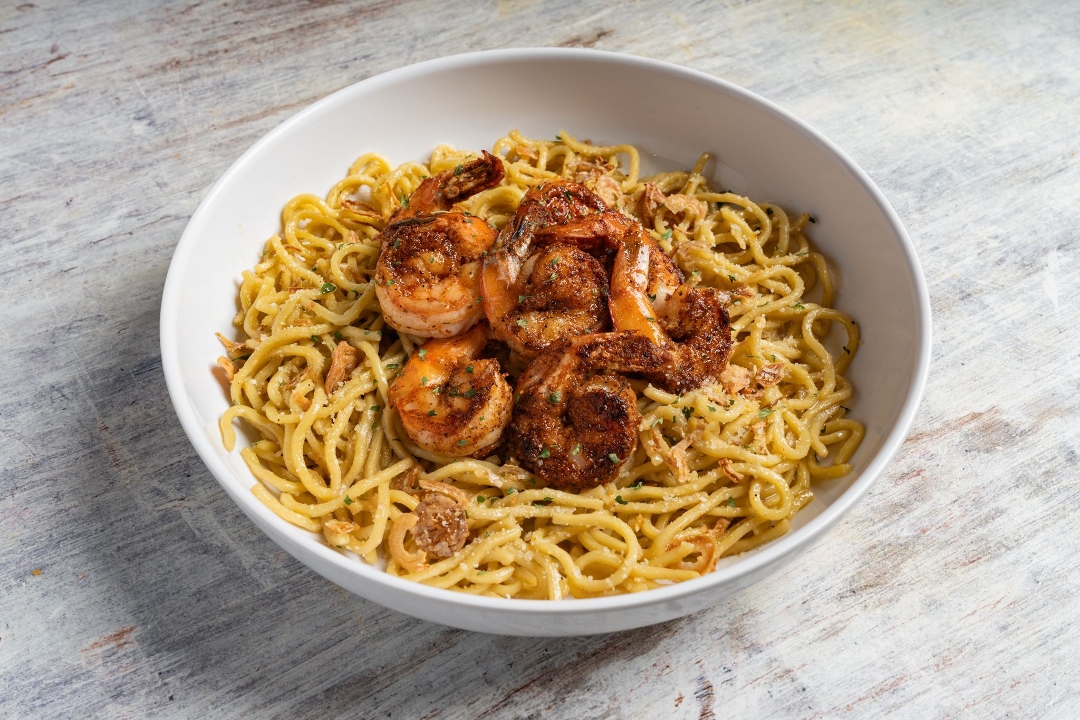 Noodles made with garlic cream sauce. Added proteins sauteed in cajun butter sauce.