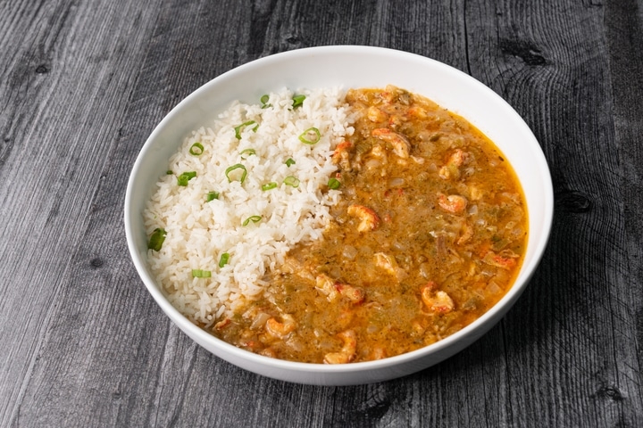Cajun crawfish stew-like dish served with white rice.