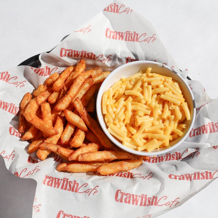Mac N' Cheese with a side of french fries.