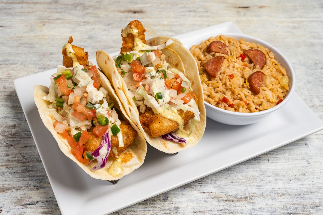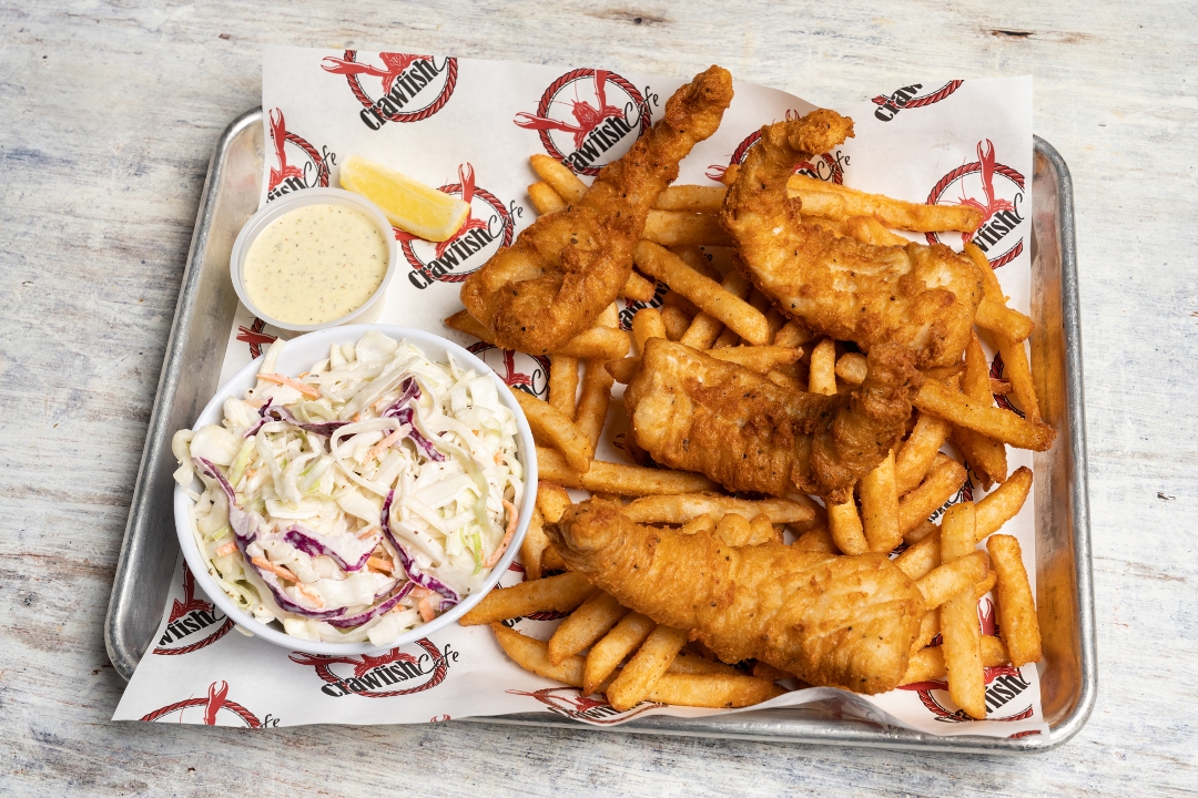 Crispy, beer battered Pacific cod served with cajun fries, coleslaw, and yuzu tartar sauce.