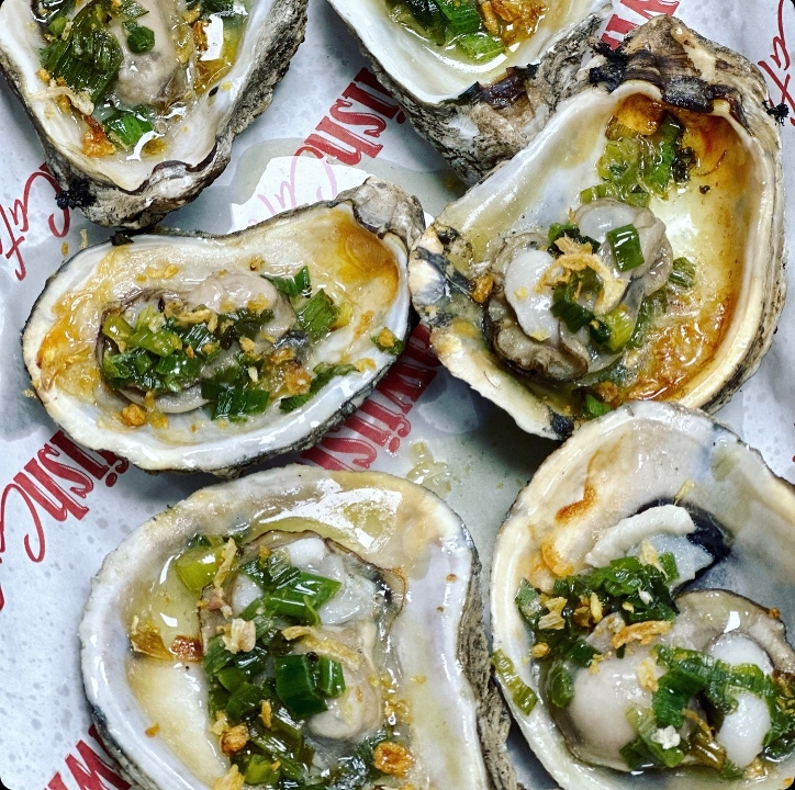 Gulf oysters topped with our secret sauce and chargrilled.