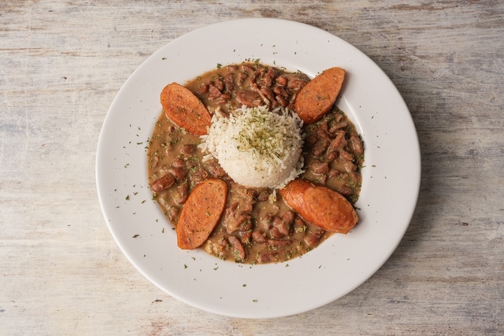 Served with Andouille sausage and white rice.